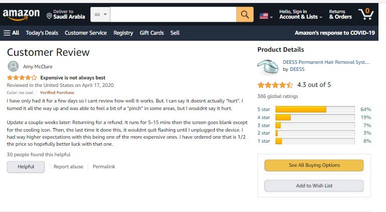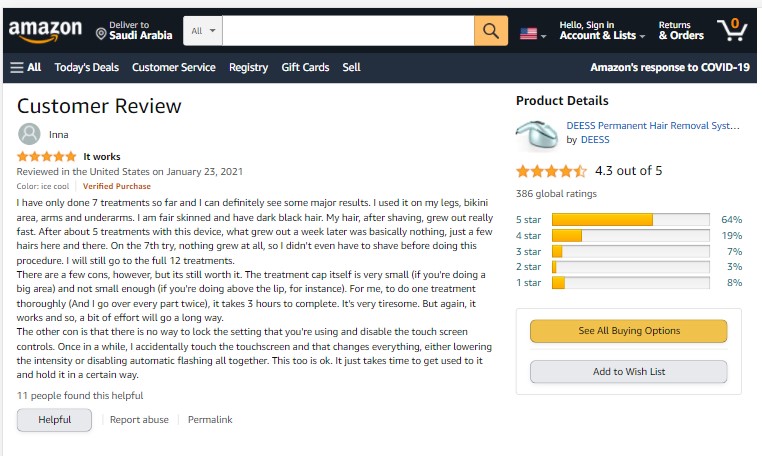 وإي صحيح إن جهاز دييس كولد من أجهزة الليزر المنزلي الجيدة، لكن للأسف مانه أفضل جهاز لإزالة الشعر بالليزر في المنزل.